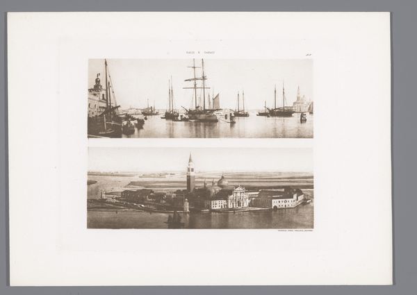 Curator: Look at this compelling photographic print, likely a gelatin-silver print. The artwork, titled "Gezicht op schepen op het Trondheimfjord," by Wilhelm Dreesen, predates 1898. I'm immediately drawn in by its textured surface. Editor: There's a striking stillness about it, isn’t there? A peaceful, quiet moment captured on what appears to be aged paper. It almost has an ethereal quality. Curator: The visible aging adds a fascinating layer, reminding us of the photograph’s history as an object. Dreesen’s choice of gelatin-silver, a popular process during that time, is significant. It allowed for mass production and consumption of images, playing a key role in shaping how the world was viewed and disseminated. Think of the role these prints played, outside traditional museum spaces, in shaping public perception of distant places like Trondheim. Editor: It makes me think about who might have originally bought this image. Was it a souvenir for someone visiting Trondheim? Or was it a form of armchair travel for someone who could only dream of visiting? The mass production aspect is key, as these images undoubtedly influenced broader social perceptions of Scandinavia. Curator: Exactly. The content itself—the ships, the water, the architecture barely visible in the distance— speak to a moment of increasing industrialization, yet also highlights a very specific relationship of this area to shipbuilding and harbor life. These boats were vital not just for transit, but for local livelihoods. Editor: And, if we consider institutions like maritime museums and how they present such images, do they fully account for the socio-economic realities encoded within? Do they just become aesthetic objects devoid of deeper meaning about the labor that propelled them? Curator: An important consideration. What might appear initially as just an appealing seascape carries potent stories about production, circulation, and consumption, particularly during a period of dramatic global exchange and visual literacy. Editor: This photograph encourages one to examine those complexities - from labor to ownership and broader societal viewpoints embedded within. Curator: It makes you consider both the intimate view and its relation to macro-level shifts. It all comes down to context and use.