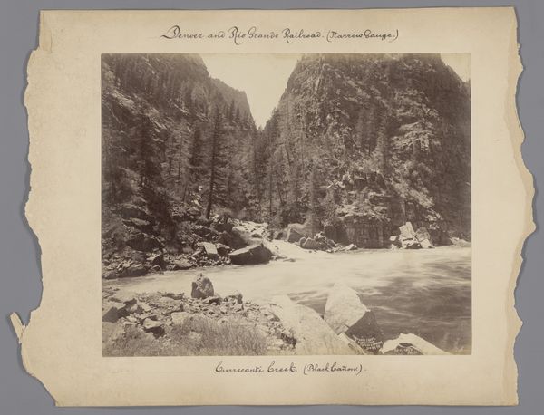 Curator: So much light and shadow! The scale of the canyon seems unbelievable. It's like gazing into some kind of silent, rocky god. Editor: You're not wrong. The work here, "Head of Cañon de Chelle, Looking Down," is a gelatin silver print from 1873, captured by Timothy O’Sullivan. He was part of expeditions documenting the American West. Curator: Ah, I see. It really does convey that grand sense of discovery, doesn't it? Like standing at the edge of the known world. I feel like I could almost step inside it and wander around for hours. Do you get the sense of this majestic scene kind of just sprawling on endlessly behind the lens? Editor: It's seductive in its simplicity, for sure. But I find myself dwelling on the historical context of that "discovery," as you call it. These landscape photos, romantic as they may appear, actively fueled colonial expansion. O'Sullivan's work supported government narratives that justified dispossessing Indigenous peoples of their land. Curator: A sobering point, indeed. But maybe, just maybe, art can hold multiple truths at once? I mean, isn't it also a testament to the geological beauty and magnificence of nature itself? Editor: Certainly. I don’t think that the work isn’t important from an artistic lens. It's about layering critical perspectives—the technical skill is there, the sublime beauty… but whose gaze are we seeing this through, and what was the impact of that vision? How might a native artist, living within this region at that very same point in time, capture this exact same landscape scene? Curator: Hmm, it does complicate the picture a little. Makes me wonder if we’ll ever truly disentangle the complex legacy of works like this, caught as it is between exploitation and genuine wonder. I think there's something undeniably haunting in those striated canyon walls. It feels ancient beyond measure. Editor: Perhaps acknowledging those complicated threads is a way of moving forward. By grappling with the historical implications while appreciating the artistic craft, we can build a more nuanced understanding. That, for me, is how we fully encounter the art.