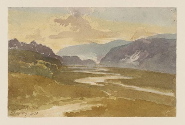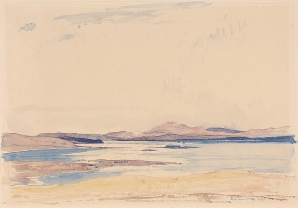 David Young Cameron rendered this watercolor, titled 'Morning in Albyn', with a delicate hand. Observe how the landscape is structured around the tranquil lake, a symbol often associated with introspection and the subconscious mind. The mountains, shrouded in a soft mist, evoke a sense of timelessness, reminiscent of the Romantic era's fascination with the sublime. Mountains have always signified the ascent to enlightenment, yet here, they seem softened, inviting contemplation rather than arduous climbing. Think of Caspar David Friedrich's wanderers, but in Cameron's vision, the journey is internal. The subtle play of light, indicating the break of dawn, carries echoes of ancient solar worship. Light as knowledge, the unveiling of truth, an archetypal motif spanning millennia. Consider the Egyptian sun god Ra, or the Christian symbolism of Christ as the light of the world; these images resonate in Cameron's gentle sunrise. It speaks to our collective memory, engaging us on a profound, subconscious level. The landscape is both a reflection and a projection, a space where nature and the soul intertwine.