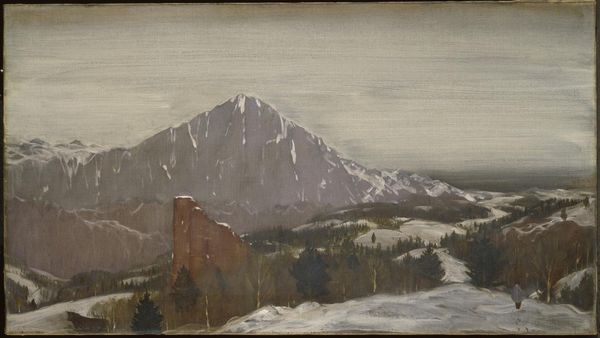 This work, titled "Obersteirische Winterlandschaft," was created by Karl Wiener in 1943. It is a pencil drawing on paper. The artist has captured a snow-covered mountainous landscape with sparse trees. Notice how the material qualities of graphite—its darkness, its ability to create both sharp lines and soft gradations—are used to create the scene. Graphite as a medium is portable and immediate. The artist probably produced this sketch outside during the winter. You can see it in the loose, expressive lines that capture the play of light and shadow on the snow. Consider the physical act of drawing, the labor involved in translating a three-dimensional scene onto a two-dimensional surface. The artist's hand, guided by their eye and mind, has meticulously rendered the details of the landscape. This drawing underscores how even the simplest of materials, when wielded with skill and intention, can evoke a sense of time, place, and feeling.