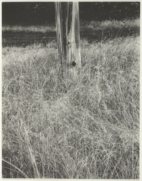 Curator: We’re looking at Hans Haacke’s "Grass Cube" from 1967. It’s a black and white photograph. Editor: It’s immediately disorienting. The photograph presents such ordinary, common material. A dense patch of grass. It gives me a strange sense of quiet, like being close to the earth itself. Curator: For Haacke, the "Grass Cube" functions as an exercise in defining the boundaries between nature, systems and the readymade. You can think of Duchamp, who used existing objects for art, only now it's the natural material world under examination. The means of photographic production elevate this humble source. Editor: Absolutely. In terms of symbolism, grass has always signified cycles of growth, renewal, even resurrection. Its abundance is a potent image in so many traditions. But in this case, drained of color and rendered so abstractly, those familiar associations feel... suspended. Curator: I think that suspension comes directly from the interplay between the real, natural state of that grass and the mediation it undergoes through mechanical and chemical processing—that of photographic development. Editor: Do you think its status as a monochrome image strips it of meaning, in the context of earlier grass imagery for instance? Curator: It challenges conventional artistic gestures. Instead of creating something entirely new, Haacke recontextualizes what's already there. It allows you to reconsider your own assumptions. Think about where you stand in relation to raw materials, labor, and ultimately, the environment. Editor: And perhaps even questions how we assign cultural weight to what we see. It compels us to really *look*. I’ll leave considering those questions. Curator: Agreed. "Grass Cube" demonstrates the inherent value found in simple, natural processes when brought into contact with manufactured tools.