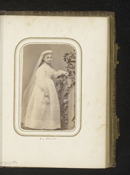 Curator: Welcome. Here we have a photographic portrait of Angéle Maréchal, captured sometime between 1870 and 1900, most likely a daguerreotype. The photographer was Louis Martin. Editor: What strikes me first is the melancholic beauty of this image. There's such a soft, ethereal quality, it's almost as if Angéle is fading into the past even as we look at her. The monochromatic palette only amplifies that feeling of gentle decay. Curator: The tonal range is indeed limited, but notice how Martin uses light to sculpt her form. The soft focus and diffused light are hallmarks of romanticism, serving to idealize the subject. Her dress, almost completely white, contrasts starkly with her darker eyes. Editor: That stark contrast, I think, hints at a complexity beyond the conventional romantic pose. She is not just a pretty picture, but seems somehow to bear a quiet weight or a subtle resignation. Curator: Perhaps the pose has to do with the conventions of the photographic portrait in this period, it has to look perfect, eternal. The meticulous detail and the staging reveal this. See how the background is intentionally vague, to emphasize the figure? Editor: But is that just it, this strive to perfection? Looking closer at her eyes... I'm drawn into a narrative, I think about a life and loves, lost chances and future uncertainties. It speaks volumes, despite being so seemingly simple in its composition. It evokes that strange magic only old photographs can do. Curator: Yes, while technically precise, the photographer captures, perhaps inadvertently, something profound about Angéle, but also about the fleeting nature of human existence. Editor: In the end, it isn't just a photograph; it’s a portal, an invitation to meditate on a lost life, caught and crystallized in a single, haunting moment.