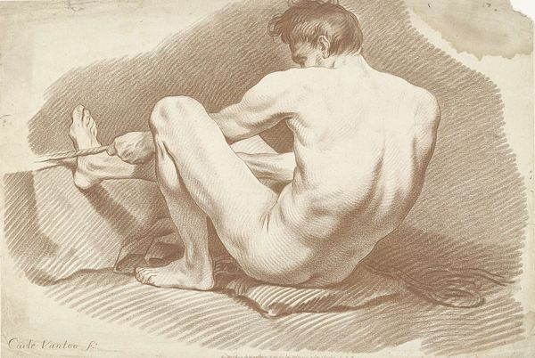 Curator: I find something rather haunting about this drawing. It’s rendered in charcoal, and there’s a pervasive gray tonality that creates a slightly melancholic atmosphere. What do you think? Editor: Indeed. What we’re looking at is Albrecht Dürer’s “Reclining Female Nude” from 1501. It resides at the Albertina Museum in Vienna. It's interesting that you use the word “haunting.” For me, it's almost confrontational. Curator: Confrontational? How so? I'm seeing an aloofness that's less than accessible. Editor: Well, there is something unnervingly dispassionate about her gaze, staring vacantly into the distance, removed. But beyond that, it speaks to larger ideas about objectification and female passivity. The artist has stripped away any sense of narrative. She simply *is*. Curator: An interesting interpretation. From my perspective, I see a rather bold assertion of idealized form. Dürer seems fascinated by the subtle modulations of light and shadow that define the female figure, almost in reverence. We are witnessing an almost archetypal figure, echoing through time. Editor: Respectfully, I must push back on that point. The emphasis on “idealized form” often serves to erase the individual experiences of women throughout history. This nude becomes a canvas for societal projections about gender, sexuality, and power. In a sense, it becomes another symbol within that discourse. The reclining pose, while referencing classical motifs, reinforces notions of female availability. Curator: I hear your concerns and cannot entirely dismiss them. Yet, I'm equally convinced that within this Renaissance composition, we see a revival of classical ideals that have reverberated across Western art, each generation revisiting these tropes through the lens of their unique experiences and concerns. We see this cultural memory continually in play. Editor: And that is perhaps what is most fascinating: that these images carry within them the tensions of continuity and resistance. Each viewing is an act of interpretation, bringing new perspectives to old forms. Curator: It strikes me how images operate in a visual chain across history. Editor: Yes. I agree. Ultimately, this is the complexity that gives an artwork its staying power and timeless intrigue.