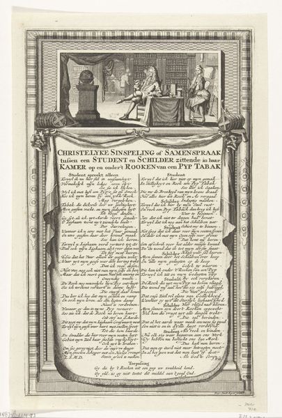 This anonymous engraving from 1706, titled 'Filips V vlucht uit het Spaanse Hof', meticulously etches a moment of political turmoil. The print’s composition is dominated by the figure of King Philip V, rendered with precise, almost clinical lines, his ornate attire contrasting sharply with the dense blocks of text that surround him. This juxtaposition creates a visual tension, highlighting the ephemeral nature of power against the permanence of the written word. The linear quality of the engraving—the stark contrast between black and white, the detailed rendering of fabric and architectural elements—reflects a broader concern with clarity and order. The image, however, destabilizes this order through its allegorical representation of flight and vulnerability, turning the notion of divine right on its head. It is a paper king, escaping, suggesting a semiotic system where regality is not inherent but constructed and thus easily deconstructed. The rigid formality of the print underscores the fragility of the monarchy it depicts.