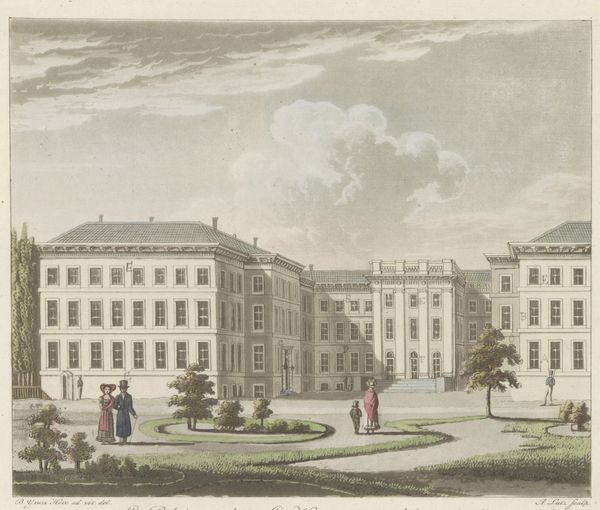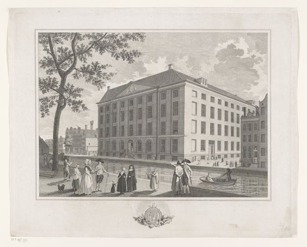 This print depicts 's Lands Zeemagazijn in Amsterdam before the fire of 1791, and was made by an anonymous artist. The structure and composition of the building itself dominates this image. Observe the use of linear perspective which directs our gaze towards the building, giving a sense of depth, and how the rigid, uniform lines of the architecture create a stark contrast with the organic shapes of the trees on the left. The artist creates a semiotic interplay between the man-made, structured environment and the natural world. The building is presented as an imposing, almost authoritarian structure, which might suggest the power and order of the Dutch naval establishment at the time. In closing, notice how the sharp, precise lines used to render the building not only provide architectural detail but also convey a sense of unyielding authority. This precision is part of a visual language that reflects broader cultural values related to power, control, and the representation of institutional strength.