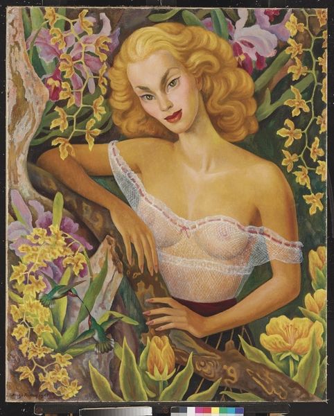Michael Cheval’s painting, “Affection,” uses oil paint to conjure a world of surreal elegance. The smooth surfaces and controlled brushwork recall classical portraiture, yet the imagery is anything but traditional. The subject, a woman in a patterned dress, blends the familiar and the strange. Her elaborate hairstyle, rendered in meticulous detail, seems to be a landscape, a kind of surreal backdrop. The folds of the dress and the bouquet of flowers she holds also seem to be in a state of change. It is this attention to detail that lends the painting its compelling power, even though the painting may appear whimsical. The use of oil paint, with its capacity for smooth gradations and luminous effects, enhances this tension, a quality shared with surrealist painting traditions. Cheval takes these traditions and engages with them, demonstrating how materials, techniques, and concepts can come together to create something entirely new. Ultimately, “Affection” celebrates the transformative power of the imagination.