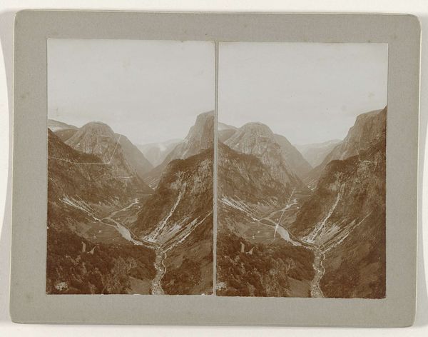 Curator: Looking at this work, an albumen print from sometime between 1870 and 1900, it strikes me how photographers were grappling with capturing the sublime power of nature. Giorgio Sommer gives us "View of a smoking crater of Mount Vesuvius". Editor: My first impression is stark, even a bit foreboding. The tones are almost entirely monochrome, creating a scene where the volcano looms, veiled in a shroud of smoke and shadow. It really plays with that classic romantic tension between beauty and danger. Curator: Exactly. Sommer's choice of albumen print really lends itself to that atmosphere. It was a process that allowed for incredibly detailed images, crucial in conveying both the grandeur and the stark reality of the volcano’s presence. It speaks to both scientific documentation and romantic ideals of the time. How does the enduring cultural fascination with volcanoes tie in? Editor: Volcanoes throughout history have served as a potent symbol for various forces: destruction, rebirth, and raw, untamed power. This image taps into the mythic weight of Vesuvius in particular; it represents the ever-present possibility of chaos bubbling beneath the surface of daily life. I find it impossible not to also think about power, history, and even violence when considering such an active natural element that continues to alter the landscape over decades and centuries. Curator: It is an important point. This image captures the aftermath and present danger coexisting in this landscape. There is both immediate shock and deep historic trauma coexisting in this place after the great Vesuvian eruption of 79 AD, where people were transformed into stone, like the ruins we continue to discover. Editor: Yes, that catastrophic eruption and its long shadow, both literally and metaphorically. This isn't simply a picture of a mountain; it's a loaded symbol brimming with layers of meaning and emotional charge. It is also interesting how this piece might impact the artist’s perspective and political and artistic liberties. Curator: Sommer’s photo of Vesuvius is more than a scenic view. It invites reflection on humanity’s fragile place amid geological forces, artistic integrity and political movements. Editor: A somber reminder of nature’s ability to reshape not only the landscape but the narratives we build around it, even our own.