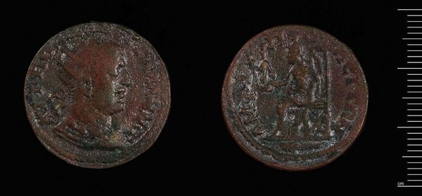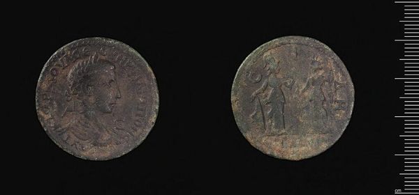 Editor: Here we have a Sestertius of Maximus. Given its worn condition, it really underscores the material reality of its use and circulation. What can you tell us about it? Curator: This coin, like all currency, represents not just value but power. The minting process itself, controlled by the state, speaks to that power. Who controlled the materials, the copper? How did this influence its value and acceptance? Editor: I see, it's less about the aesthetic and more about what the coin represents in terms of social structures. Curator: Precisely. Consider the labor involved, the distribution networks, and how this small object facilitated trade and reinforced hierarchies. It's a material trace of a complex system. Editor: That gives me a whole new perspective. Thanks! Curator: My pleasure. It's always enriching to consider the tangible reality behind the art.
