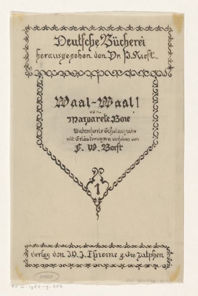 Reinier Willem Petrus de Vries made this book design, probably with ink on paper. You can see the trace of his hand in the careful letterforms, but also in the looser scribbles and exploratory marks. I think of artmaking as a kind of conversation with yourself, and this piece lays bare some of that process. The grid peeking through gives it a sense of structure and restraint, but the handmade quality of the script pushes against that. There are several attempts at the same phrase, one stacked on top of the other, like variations on a theme. It reminds me of Cy Twombly’s use of language, or even some of the concrete poets, where the form and the meaning of the words become intertwined. It's really about the materiality of language, the way it looks and feels. And how meaning is never fixed, but always open to interpretation.