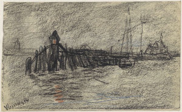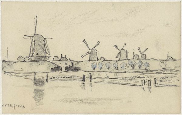 Adolf le Comte created this sketch of a town by the water using graphite and colored pencil. The town’s skyline is punctuated by windmills and a church tower. These vertical structures, reaching towards the heavens, have long been symbols of human aspiration and connection to the divine. We can trace this motif back to ancient ziggurats and obelisks, each striving to bridge the gap between earth and sky. Even the humble windmill, a practical tool, takes on a symbolic dimension here. Its rotating blades might echo the cyclical nature of life and the eternal quest for progress. Consider the ancient pyramids of Egypt, monuments not only to pharaohs but also to humanity's yearning for immortality. The church towers, too, carry this sense of aspiration, their bells calling out across the landscape, connecting communities through faith and shared experience. These are not merely buildings but vessels of cultural memory, resonating with the collective subconscious of generations past. Le Comte’s work beautifully captures this interplay between the earthly and the transcendent, inviting us to reflect on the enduring power of symbols to shape our understanding of the world.