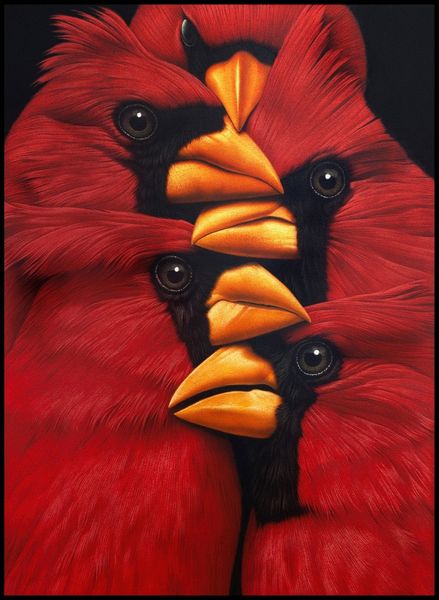 Eckart Hahn’s ‘One on One’ presents us with two storks against a simple blue backdrop, their beaks interlocked and bound by red rope. Hahn was born in Germany, where the white stork is a symbol of good luck, and new beginnings, and is often culturally associated with birth. Here, Hahn challenges traditional associations by introducing a black stork – a bird with the same familial ties, yet marked by difference. The image evokes a sense of tension: the birds, constrained by the red rope, are held in an intimate yet confrontational pose. One might see an exploration of relationships and the delicate balance between connection and constraint, particularly within the context of societal expectations. Consider the contrast between the white and black storks; Hahn seems to ask us to consider the complexities of identity, and how society imposes barriers on authentic connection. The artist draws us into a psychological space, where the viewer is invited to contemplate the nuances of identity, and the complexities of ‘one on one’ relationships.