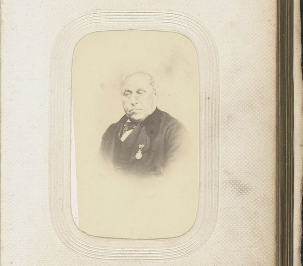 Editor: We’re looking at "Portret van een man met bakkebaarden," or Portrait of a Man with Sideburns, created between 1868 and 1887 by Théophile Brackelaire. It's an albumen print, which gives it this lovely warm tone. The subject’s face feels…stark, almost. What do you make of it? Curator: Stark is interesting. I see a certain…weariness? Think about the sitter enduring the long exposure times of early photography. The patience required! But it’s also oddly intimate, don’t you think? Albumen prints have this incredible detail – almost forensic in the way they capture every pore and wrinkle. It’s realism amplified. And I wonder about those sideburns, too… So meticulously groomed. It feels almost defiant, a personal flourish in a very formal age. What does it tell you about how he wished to be seen, I wonder? Editor: A personal flourish, yes! I didn't quite see that. It's amazing to think of someone carefully posing and considering their image that way, so different from our Instagram age. Do you think there’s a statement being made by presenting in what we understand now to be sepia tone? Curator: It definitely creates a nostalgic feeling. I am fascinated by the way it speaks to the fleeting nature of life and how it captures it and allows one to relive it later. It does this whilst allowing a portal into understanding what one might feel or undergo within that lifetime. Editor: It’s so evocative; I find myself wondering about the story etched on his face. Curator: Exactly! That's the magic, isn't it? The best portraits are never really *about* the sitter, but about ourselves, peering in and finding reflections. I think there’s a kind of wisdom captured, whether real or projected. What a stunning man; Brackelaire's capture of that alone is astonishing.