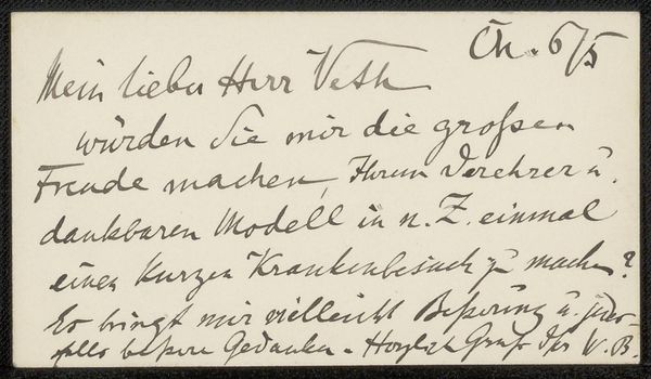 This is a calling card by Barbara Elisabeth van Houten, and it's all about the gesture, the movement of the hand. It's not about perfection, it's about the flow. See how the ink pools in some spots, where the pen lingered a little too long? It’s like she's pressing into the moment, feeling the words as she writes them. And the way the letters curve and loop, it's almost like a dance. The whole thing has a kind of off-the-cuff immediacy that feels really intimate. The surface is simple, like a painter's canvas. It reminds me a bit of Cy Twombly, in the way that it elevates the casual scribble to something profound. It’s a reminder that art isn't always about polished perfection; sometimes it’s about capturing the messy, beautiful, imperfect reality of being human.