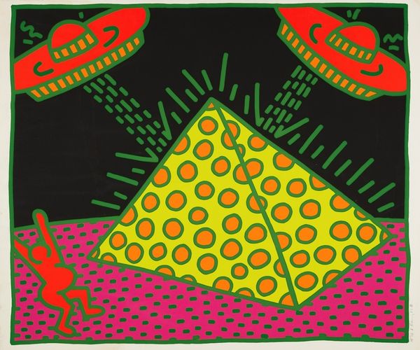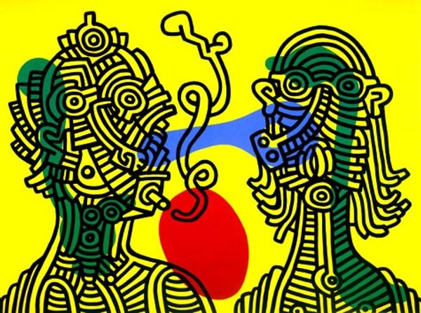 The American pop artist Keith Haring (1958-1990) celebrates the joys of life in this painting. At a width of over 3.5 metres, Tree of Life (1985) is a striking and monumental representation of optimism and energy. It was sold for £1.53 million in 2014. Tree of Life acts as a homage to Haring’s close friend and fellow artist Maria Bonnier Dahlin (1964-1985), who died aged 20 in a car accident. Here, Haring opts to memorialise her memory with the spirit of joy, rather than produce a solemn piece in mourning of her passing. Dahlin’s legacy is also preserved in the Maria Bonnier Dahlin Foundation, which provides financial grants to young Swedish artists. The motif of a sacred tree is one which spans religion, mythology, location, and time. The tree of life is a virtually universally recognised symbol of eternal life and the power of nature, featuring in Islam and Greek mythology to Christianity and beyond. Alongside works such as St. Sebastian (1984) and The Ten Commandments (1985), Tree of Life (1985) is one of many biblical subjects painted with originality and imagination by Haring. He infuses a vibrant and fantastical dynamism into the traditional symbol of a tree of life, infusing the painting with a fresh and contemporary energy. Blooming from the twisted branches of the tree are not flowers, but dancing bodies with waving arms. Below the tree, yellow polka dot figures are also caught in a whirl of energetic movement, and raise their hands as if worshipping the tree. The black lines, representing lively movement, and vibrant colours of the piece create a sense of optimism and triumph. Inspired by 1980s New York graffiti subculture, Haring’s works are widely reproduced, both as prints and on popular merchandise. His paintings are often instantly recognisable due to their signature dancing outlines, bold colours, and graphic texts. This painting comes from the later stage of his career, when Haring used his work to call attention to social and political themes such as the AIDS crisis and apartheid. The artist died at 31 from AIDS related complications, leaving a brilliant legacy of iconic and publicly accessible images. Editor: Lucy Jude Grantham