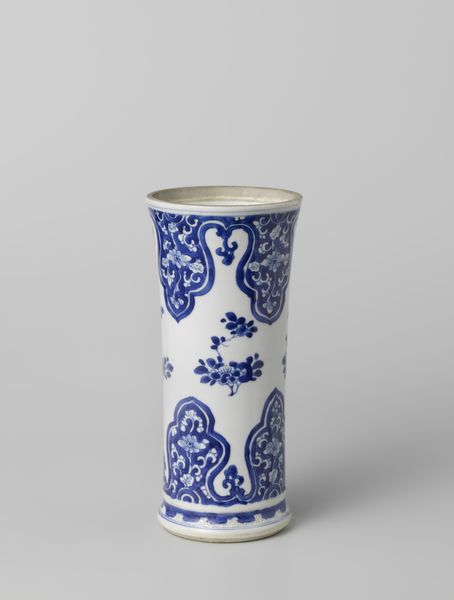 Curator: Wow, this garden seat really stops you in your tracks. Editor: It does, doesn't it? A surprisingly grounded energy for something so ornamented. Makes me think of taking a pause, really settling down amidst a chaotic world. Curator: Well, let's unpack some context. This piece is titled "Octagonal garden seat with lotus scrolls", dating from around 1750 to 1774, and comes to us from an anonymous maker. Right now it's held in the Rijksmuseum collection. It's crafted in ceramic, reflecting a period keen on blending artistry with practical design. Editor: Ceramic, right? And it feels much bigger somehow, the intricacy of the pattern pulls me right in and I just know that ceramic's smoothness will feel cool and grounding beneath my palm... Makes you wanna sink into it. But also, that octagonal shape gives it structure, a clear defined presence within whatever garden it occupied. The color is so calming. Curator: Precisely! These garden seats are so interesting within their history. This type of seating wasn't just for leisure; it signaled a cultivated space, a stage for displaying wealth and taste. The lotus scroll, especially, bears weight. In Chinese iconography, the lotus represents purity, enlightenment, peace, and the cycle of rebirth. Editor: Right, a seat not just for sitting, but contemplating the nature of being. I dig that! It almost becomes less about luxury and more about, about centering yourself in nature. It makes you imagine what kind of conversations bloomed while someone sat there amongst the real flowers. Or, better yet, what quiet observations did they have? Curator: A delightful imagining. What I find intriguing is that such highly crafted objects democratize notions of peace and contemplation. A mass produced item now brings these Eastern philosophies into garden design. It’s now accessible to, presumably, everyone who goes to visit it! It alters who may find rest. Editor: Mmm, makes me consider its legacy: sitting in peace and contemplating it even here and now! Like the rings rippling outwards in a pond, this artwork seems small, contained but... powerful. Curator: Indeed. The Octagonal Garden Seat prompts reflection on how material culture shapes access and distributes cultural touchstones, democratizing not only spaces, but concepts. It has truly left a legacy. Editor: Okay, so maybe a seat isn't *just* a seat... this time. Thanks, this was illuminating.