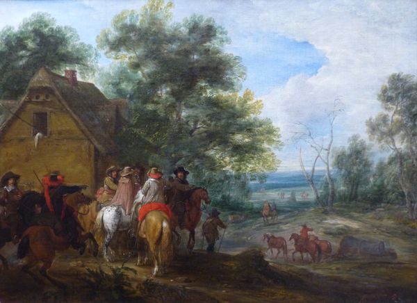 Adriaen van de Velde's "Ferry Boat" presents a tranquil scene with a complex interplay of light and shadow. Painted with oil on panel, its composition draws you into a serene landscape where figures and animals converge near a riverbank. The formal structure of the painting is built around a contrast between the dark, dense foliage on the left and the open, luminous sky on the right. Van de Velde uses this division to guide the viewer's eye, creating a balanced yet dynamic visual experience. Notice how the figures, carefully arranged in the foreground, serve as a bridge between these contrasting spaces, their poses and gestures subtly directing our gaze. The pastoral scene and the crossing can be viewed as a meditation on the passage of time, a reflection on human interaction with nature, and perhaps a symbolic crossing to a new beginning. The artist employs a semiotic language where the boat becomes more than just a vessel.