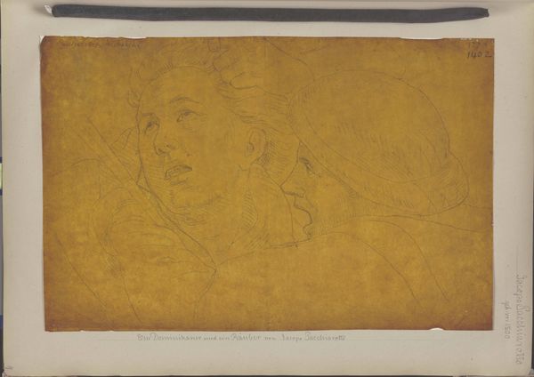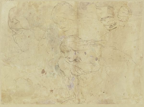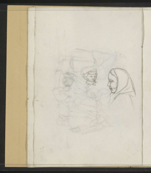 Editor: This is Odilon Redon's "La cloche grave de Sainte-Gudule," a chalk drawing from around 1886-1887. It's quite ghostly. I notice a series of figures, but they almost seem to be fading into the background. What stands out to you in this piece? Curator: I am immediately drawn to the work's linear quality and the restricted palette, qualities that underscore its structure and underlying geometry. Redon here prioritizes line over mass, allowing the eye to perceive the figures through their outlines. Do you observe how the architecture and human subjects seem almost unified by this consistent application of line and tone? Editor: I do. It's as if the people are part of the cathedral itself. But what does that choice signify? Curator: The visual syntax is highly stylized. We might interpret it as a strategy to investigate the essence of form rather than adhering to representational accuracy. Redon is using line and form here as signs, not merely mimetic tools. Semiotically, we can begin to explore the meanings latent in the stark compositions and the relationships between those figures, each of whom represents something from the artist's world. Editor: So, by breaking down these images to almost pure shapes, he is opening it up to more diverse interpretations? Curator: Precisely. In dissolving the figures, Redon makes them—and the architecture of the church itself—more plastic, more available for his exploration of an inner vision. We can look at the work and deconstruct how Redon builds an introspective narrative in shades. The beauty here resides in its intellectual rigor rather than emotional appeal. Editor: I now realize how intentional those stylistic choices were. I initially felt a sense of unease, but that now shifts to awe, witnessing an artistic vision forming right before my eyes. Curator: Indeed. Examining its aesthetic devices lets us look more thoroughly at a landscape of the soul.