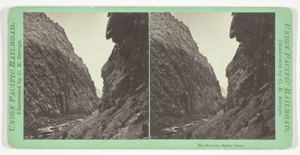 This stereograph, Giant's Gateway, Cañon of North Fork, was published in 1876 by W. I. Marshall and captures a view within Yellowstone National Park. Stereographs like this were immensely popular, offering a momentary escape into the American landscape, but we should consider whose land this really is. These images played a crucial role in shaping perceptions of the American West, often romanticizing it as a land of endless opportunity, while eliding the violent displacement of Indigenous peoples. The very act of naming this place "Giant's Gateway" speaks to a history of imposing narratives onto the land. Consider how the framing emphasizes the grandeur of the natural landscape, inviting viewers to marvel at its untouched beauty. Yet, this idea of untouched wilderness is a fiction, as it erases the presence and stewardship of Native communities who have lived here for centuries. This photograph is not just a landscape; it's a loaded representation. As you look, think about the stories it tells and, more importantly, the stories it leaves out.