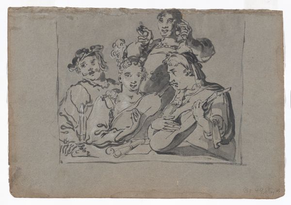 Leonaert Bramer’s rendition of “King Midas,” composed with pen, gray wash, and white gouache on paper, offers a study in tonal contrast and spatial arrangement. The somber grays and strategic deployment of white gouache direct our gaze to the central figure, Midas, and the transmutative moment of his golden touch. Bramer uses the stark monochrome to intensify the narrative's gravitas, while the composition employs a shallow depth, pressing the figures against the picture plane, heightening the psychological tension. The semiotic weight of the illumination from the candle is interesting, given that it casts light on the transformation of sustenance into inedible gold. Consider how Bramer uses the formal constraints of his medium to explore themes of transformation and value. The restricted palette and careful composition challenge us to reflect on the material and moral implications of Midas’s desire, sparking a dialogue between artistic form and ethical content.
