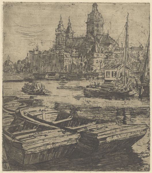This is D.V. van de Grave's ‘View of Rostock,’ made using etching, a printmaking technique that democratized image production. An etcher covers a metal plate with a waxy ground, then scratches an image into the ground with a needle. The plate is then immersed in acid, which bites into the exposed metal. After removing the ground, the plate is inked, and the surface wiped clean, leaving ink only in the etched lines. Finally, damp paper is pressed against the plate, transferring the image. This method is inherently reproducible, which explains the print’s slightly documentary quality. It gives us a glimpse of Rostock, likely for a public keen to know the wider world. The composition’s horizontal sweep emphasizes the city’s mercantile activity, with ships dominating the view. It’s a reminder that even the finest art is rooted in the labor and exchange of materials.