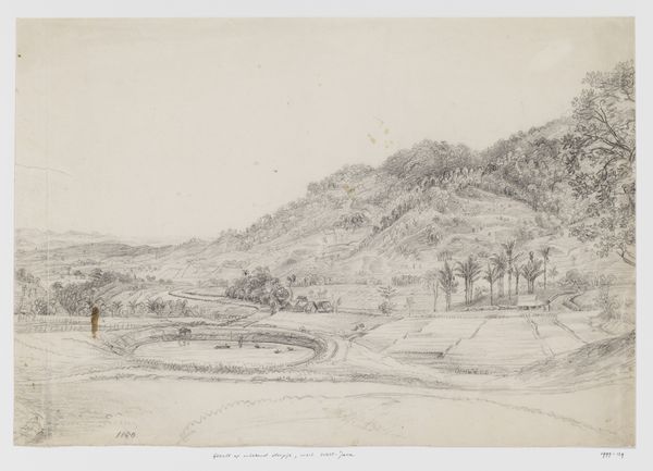 Curator: Victor Müller created this pencil drawing, “Ansicht von Falkenstein im Taunus," in 1844. It's currently held here at the Städel Museum. Editor: The first word that comes to mind is delicate. It feels like a whispered secret, almost fragile. I love how much texture he achieves with just pencil. Curator: Yes, look at how Müller uses varying pressure to create depth, giving texture to the rocky foreground while the village nestled on the slope uses a lighter touch. He masterfully uses the properties of graphite to its full extent. Editor: Exactly! You can practically feel the coolness of those foreground rocks and the gentle breeze through the trees up on the hill. I find it strangely calming and melancholic all at once, as if it were trying to show the romantic connection between the village and nature. Curator: And we should note that Müller's technique would have required a significant amount of time and patience. This was pre-photography; representing landscapes with such detail underscored their cultural and economic value. Editor: Absolutely, and think about the paper itself— handmade, each sheet a unique canvas. There’s also a sense of performance in the act of drawing like this, capturing the essence of place and imbuing it with emotion, right? Curator: Definitely, Müller transforms a mundane subject into a visually striking one. It highlights Romanticism’s deep interest in nature and its ability to move people spiritually, while quietly elevating drawing from just preparation for paintings to art in its own right. Editor: Looking at this has changed my perception of this entire historical period! To be honest, I usually skim past landscapes of this era, but I’m struck by its intimacy. Curator: The act of creating the work speaks volumes and I like the new perspective on its material value. Editor: I completely agree, its delicacy combined with this detailed precision. Beautiful!