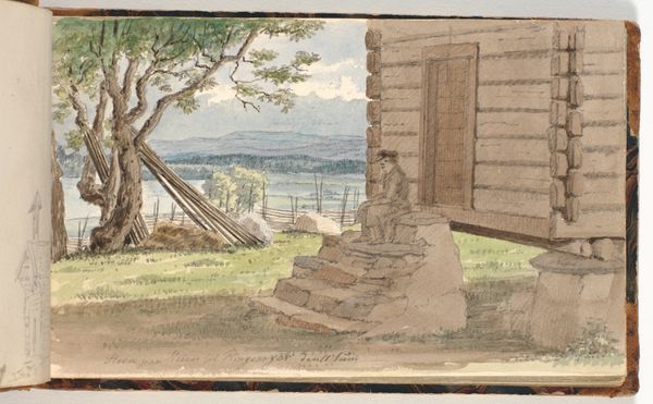 Curator: Maria Vos's watercolor, "Scuffling Chickens in a Yard," created around 1864-1865, offers a glimpse into rural life. Editor: My initial impression is one of gentle decay; a muted color palette suggests a melancholic and introspective mood, as though time is quietly withering away at this humble farm. Curator: Interesting. From a material perspective, the sketch breathes realism by exploring a scene and rendering it with quick plein-air style applications of color on paper. How labor defines that image and vice versa fascinates me. Vos seemingly values the working barnyard—note the ramshackle wooden fence in the yard; what symbolism do you perceive there? Editor: The chickens, rendered with subtle strokes, emerge as potent symbols of simple joys amid modest resources, echoing centuries of folklore that associate fowl with rustic blessings. In the past such iconography also implied deeper anxieties, but the tone here seems positive. The worn fence could signify boundaries, yes, but also the constant interaction between humans and the natural order in this small setting. Curator: Right, because labor informs the imagery in terms of depicting human use—versus just “nature." We can even speculate about watercolor and plein-air—quick, economical. Not costly oil paints or precious canvas. How might those constraints themselves convey an unspoken commentary about rural production? What’s *allowed* given the resources. Editor: Indeed! The deliberate choice of chickens over, say, a majestic stag further grounds the scene in unpretentious simplicity. This makes her work an embrace of unassuming subjects, and elevating them with delicate watercolor strokes into icons of contented domesticity, like a psychological mirror. Curator: I see the reflection, then, of a culture working its way towards new materials, towards depicting the "real." The choice of this scene, and this method, marks a deliberate departure from, let's say, more classical forms of commissioned portraits or large scale landscape works. What do we do with this conscious divergence as scholars? Editor: Ultimately, Vos’s work asks us to reassess beauty. Its understated iconography pulls us into intimate reflections upon what we truly value—and its humble aesthetic only makes it that much more affecting. Curator: And for me it becomes about appreciating the means to her artistic production—the accessibility and immediacy—and their profound impact on expanding our perception of artistic merit in 19th century life.