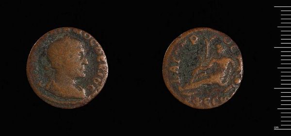 Curator: This is a sestertius of Alexander Severus, part of the Harvard Art Museums collection. Editor: There's such a tactile quality to this coin. It feels like holding a piece of history worn smooth by countless hands. Curator: Indeed. Coins like these were crucial tools for disseminating imperial propaganda. The portrait flattens the image of the emperor, and the goddess is intended to show the image of Salus. Editor: It’s incredible to think about the labor involved, from mining the metals to die-cutting and striking each coin. The creation of these bronze pieces tells its own story. Curator: Absolutely. The imagery used, the production of the coins, the distribution networks—all reflect the power structures and socio-political climate of the Roman Empire. Editor: Looking closely at the materials gives us some hints about the production of the coins at that time. Curator: A perfect example of the intersection between material culture and political ideology, don't you think? Editor: I do. It makes you think about what everyday objects say about our own time, as well.