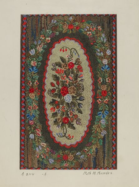 This "Hooked Rug" was created by Barnes, who lived from 1855 to 1995, and it's an image of a rug, so we have art *of* art. The tiny marks, side by side, in an all-over pattern, feel very process-oriented, like Barnes was mapping the rug one stitch at a time. The color palette is so charming. It's a bit muted, a little aged, like it's been loved for generations. I'm really drawn to the border: that solid band of green-blue. It grounds the whole piece, creating a container for all those delicate pink roses. It's like Barnes is saying, "Here's the edge, here's where the rug ends, but the beauty, the craft, it just keeps going." It reminds me of some of the work of Ree Morton, that shares a similar interest in the everyday object and a sensitivity to color. Art is always this conversation, isn't it? We're all just talking to each other across time.