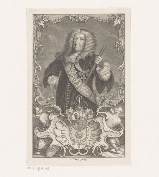 This is Jacob Folkema's portrait of Gustaaf Willem Baron van Imhoff, etched with exquisite detail. Note the profusion of symbols surrounding the Baron's likeness, transforming the image into a complex statement of power and intellect. Observe the array of military objects intermingling with symbols of science and the arts, and the symbolic rooster, a symbol of vigilance and courage, perched proudly. The shields and helmets evoke ancient military prowess, reminiscent of classical heroes, while the globe symbolizes global power and exploration. Consider the theatrical mask, a poignant symbol of deception, reminding us of the multifaceted nature of human identity. Such masks can be traced back to ancient Greek theatre, embodying both tragedy and comedy – recurring archetypes in the human experience. These symbols, laden with collective memory, tap into our subconscious understanding of power, knowledge, and the human condition, making the Baron's portrait a powerful statement, echoing through time.