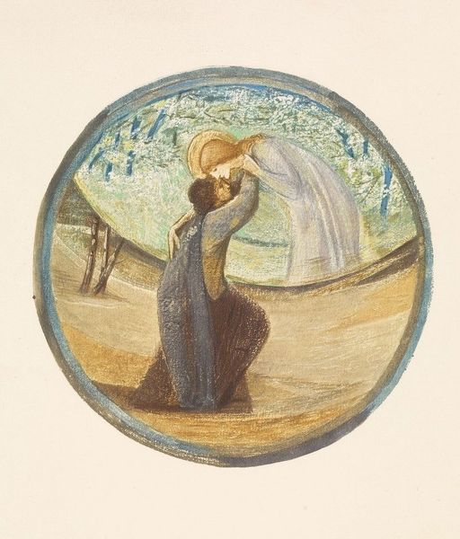 Edward Burne-Jones created this watercolour and gouache work, "Witch’s Tree," where a circular composition encloses two figures amidst a blossoming tree. The somber palette, dominated by browns and blacks, draws us into a contemplative mood. The figures, rendered with a delicate linearity, appear to be caught in a silent dialogue, their forms partially obscured by the dense, floral thicket. This composition evokes a sense of mystery, enhanced by the contrast between the dark, cloaked figure in the tree and the standing figure. The circular format, a recurring motif in Burne-Jones's oeuvre, serves to isolate and intensify the scene, creating an introspective space. The dense, stylized rendering of nature, challenges conventional perspective, suggesting a symbolic rather than a realistic representation of space. Ultimately, the visual dynamics of “Witch’s Tree” offer a glimpse into the artist’s exploration of symbolism and form. The circular frame emphasizes the cyclical and self-contained nature of the narrative, inviting ongoing interpretation.