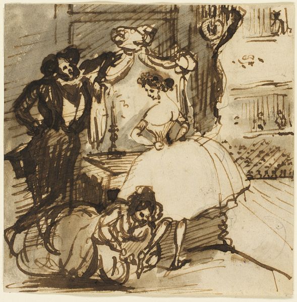 Arthur Rackham made this drawing, “And the maids cried ‘good gracious, how very tenacious!’”, sometime around 1897 with ink and watercolor, probably for a book illustration. The lines are so delicate, like he was sketching in mid-air. The whole thing feels like a drawing, not a painting, with these pale washes of color. It's all about the line, the texture, and the energy. Look at the floorboards, they are more like gestures than actual wood. The dark lines make each plank vibrate with movement. That little cat in the corner is the best! It mirrors the flurry of activity and panic among the maids, like a little echo in the composition. Rackham reminds me a little of Aubrey Beardsley, especially in the way he captures theatrical gestures. But where Beardsley is all about artifice, Rackham is somehow warmer, more human. It's like he’s inviting us into a world of imagination and storytelling, where even the smallest details have a life of their own.