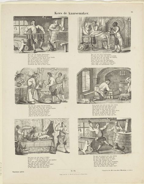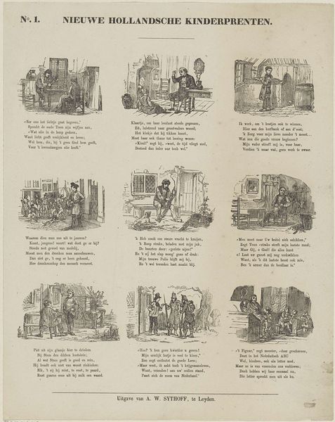 This color print was created by Albertus Willem Sijthoff. The sheet presents different scenes of children. One scene depicts a child kneeling by a bed, hands clasped in prayer. This simple gesture transcends mere piety; it echoes across centuries, from ancient Roman votive offerings to Renaissance depictions of saints, each iteration imbued with the hopes and fears of its time. Consider the emotional resonance of this image, connecting viewers on a deep, subconscious level. The act of kneeling—a universal expression of supplication—taps into our collective memory, evoking feelings of vulnerability and trust. This posture transcends cultural boundaries, embodying a primal yearning for comfort and protection. This posture, deeply rooted in human experience, reappears throughout history, subtly shifting in meaning but always carrying the weight of our shared past. The image is part of a cyclical progression, resurfacing and evolving, as it reflects the enduring human need for solace.