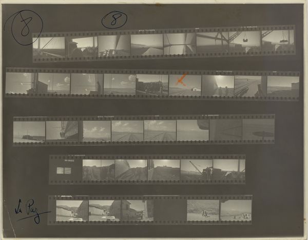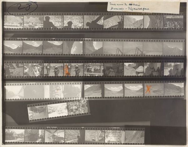 This is Robert Frank’s film contact sheet, *Valencia, Spain 16*. It’s a little like looking over an artist's shoulder as they work. You see these little windows, moments caught, and the red marks around certain frames – that's the artist making choices, editing. There are buildings, landscapes, and people, all in this grainy black and white. The light feels harsh, almost like a document of seeing. The contact sheet itself becomes part of the art. It shows the before and after, the possibilities, the editing, the decisions. Art isn't just about the final product; it's about the whole messy, beautiful process. Thinking about other photographers, maybe someone like Garry Winogrand. He also took tons of pictures, seemingly at random, but then, through editing, found something meaningful in the chaos. Ultimately, this piece reminds us that art is an act of selection, and the choices artists make are what give the work its charge.