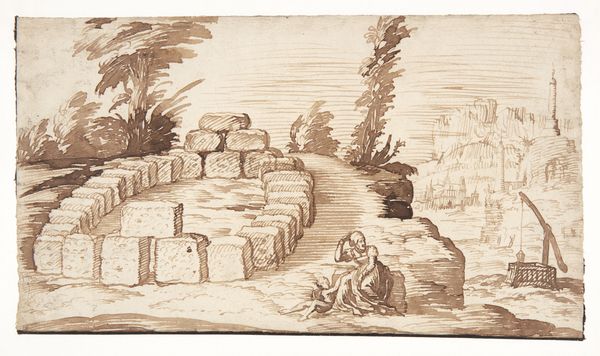 Martinus Rørbye made this illustration for "Fifty Fables for Children" using pen and ink. Rørbye, who lived from 1803 to 1848, situated this fable in a time when ideas about national identity were forming. The image of a hen with her chicks evokes themes of motherhood, care, and protection, reflecting societal expectations of women in the 19th century. However, note how the hen is placed at a gate, on the verge of leaving the enclosed space behind. This can be seen as challenging conventional roles, suggesting a desire for exploration beyond domestic confines. The meticulous details in the plants and the landscape create a peaceful, idealised setting, yet the open gate also hints at the unknown. This illustration invites viewers to reflect on the balance between nature and nurture, and the personal desires versus societal expectations. It's a gentle nudge to consider the complex layers within simple tales.