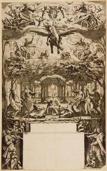 Curator: At first glance, it feels overwhelming, like a tapestry woven with countless figures in perpetual motion. Editor: We're looking at "Moses and the Waters" by Lelio Cosatti, a work held here at the Harvard Art Museums. Its dimensions are roughly 47 by 70 centimeters, and it presents a densely packed scene. Curator: Yes, the composition calls to mind classical friezes, narratives unfolding across time in a single plane. The repetition of figures—the idealized bodies—evokes a sense of communal suffering. Editor: Indeed, that's a key element. Cosatti is referencing not just a biblical story, but the broader theme of divine intervention in human affairs. The imagery certainly reflects socio-political tensions. Curator: And, perhaps more universally, the longing for liberation. The figures straining toward Moses represent a collective desire for change, a powerful visual metaphor for hope. Editor: That’s a fascinating point. Seeing it that way, I appreciate how the artist uses historical context to inform a message that persists today.