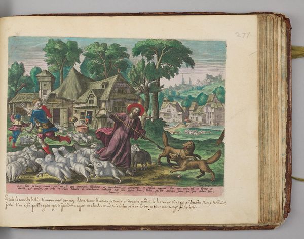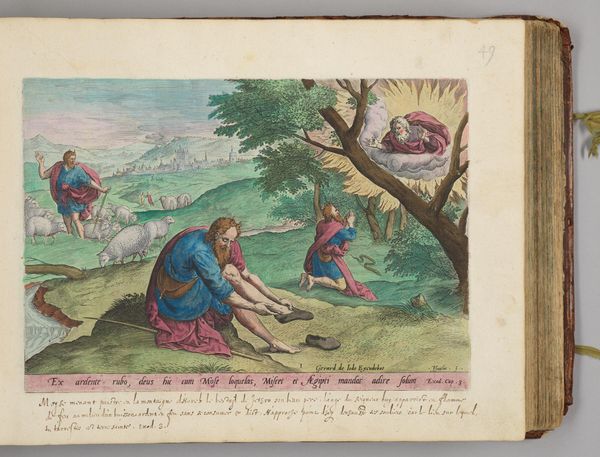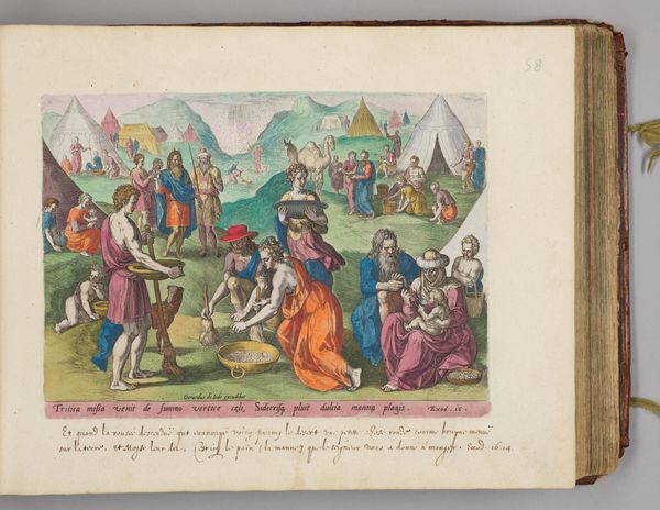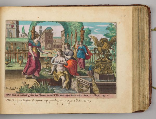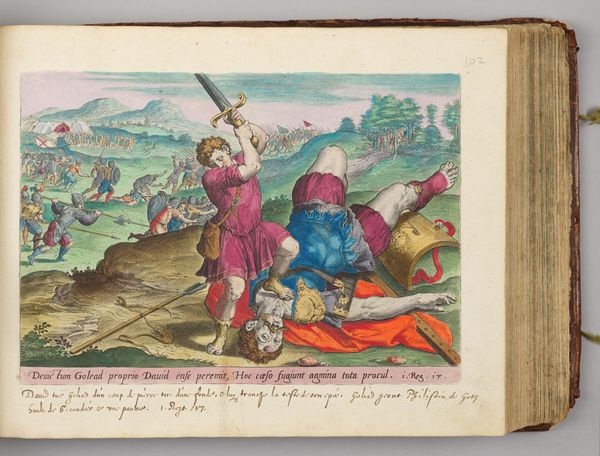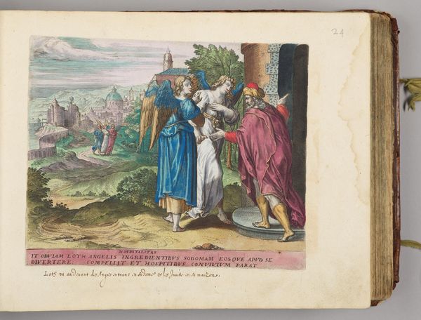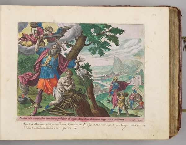 Curator: Look at the way Anton Wierix II composes “Samson and Delilah.” The figures are vividly rendered in the foreground against a very detailed landscape. Editor: It’s striking how much of the image is devoted to the act of betrayal. The soldiers are almost secondary to the interaction between Samson and Delilah. Curator: It’s a powerful interpretation of a well-known story, and I think the printmaking medium here is quite appropriate. Consider how easily these images could be circulated and consumed. It speaks to the dissemination of both the biblical narrative and the values it promotes. Editor: Agreed, and beyond the narrative, the interplay of light and shadow draws my eye, emphasizing the drama of the moment. The composition directs our focus firmly towards the protagonists, especially Delilah’s expression. Curator: Seeing it this way really highlights the complex relationship between artistic skill, storytelling, and the socio-political environment in which this work was created and used. Editor: Yes, a detailed print that really brings this biblical scene to life in a potent manner.