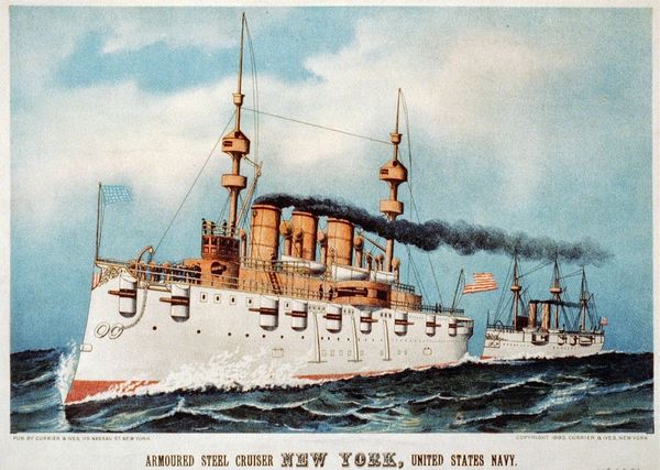 Curator: What a striking woodblock print. This is Kobayashi Kiyochika’s "Great Victory of Our Forces at the Battle of the Yellow Sea, Fourth Illustration," currently held at the Harvard Art Museums. Editor: It’s incredibly dynamic. The way the waves are rendered gives the whole scene such energy, even a sense of unease. It’s a powerful composition with those towering warships amidst explosions. Curator: Kiyochika was working in a period of intense nationalism. Prints like these served to galvanize public support for the military, showcasing Japan's modernization after the Meiji Restoration. Editor: The high contrast between the bright, burning ships and the dark sea certainly creates drama. The artist masterfully uses the triptych format to expand the narrative scope. Curator: Absolutely. These images were crucial in shaping public opinion and reinforcing national identity. Kiyochika’s work, while seemingly celebratory, also reveals much about the socio-political climate of the time. Editor: I see now how the aesthetic choices contribute to that narrative. It's more than just a battle scene; it's a carefully constructed statement.