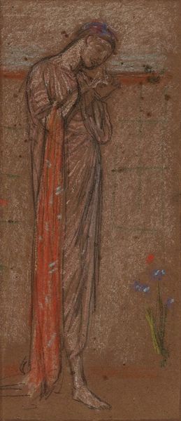 Fra Angelico created this image of St. Matthew in tempera and gold leaf on panel. Notice how the composition is dominated by soft pink hues, gently outlining the saint's form, which gives the whole work a peaceful, contemplative quality. The linear folds of St. Matthew's robes guide the eye downwards, creating a sense of verticality that is gently grounded by the small, darker patterned section at the bottom. This contrasts with the gold halo, which flattens the figure. The halo is a symbolic marker, delineating a sacred presence in an otherwise earthy palette. Fra Angelico uses line and color to create both depth and flatness simultaneously. The book, adorned with stars, is rendered in deep blue, and held by St. Matthew, which further contributes to the formal balance of color and light, making for a visually structured experience. Ultimately, this invites us to reflect on the interplay between the divine and the human.
