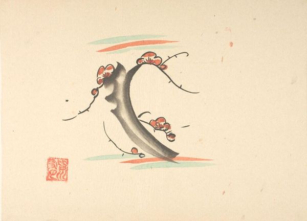 Curator: This delicate design, titled "Plum Branch Design for Teapot," is attributed to Minagawa Masu and is currently held at the Harvard Art Museums. Editor: It evokes such a quiet strength, doesn't it? The simple lines create this feeling of resilience against a stark background. Curator: Indeed. Plum blossoms in Japanese art often symbolize perseverance and hope, particularly because they bloom even in the cold of winter. Consider the social context: What message might Masu have intended for the user of the teapot? Editor: Perhaps it's about finding beauty and strength even amidst hardship, a sentiment deeply resonant when we consider the pervasive inequalities that intersect with access to art and design historically. The teapot becomes a vessel for quiet resistance. Curator: Absolutely. The very act of creating and appreciating art becomes a subtle but powerful form of agency. It's a reminder that even in the most utilitarian objects, there's space for profound meaning. Editor: So true. This artwork really speaks to how we can draw resilience from everyday beauty.