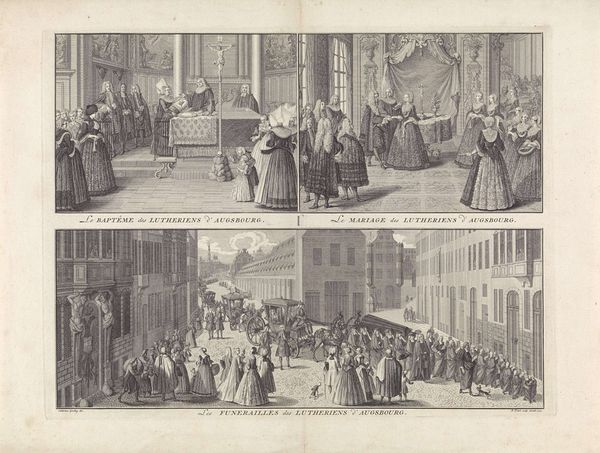 Bernard Picart’s undated engraving juxtaposes two religious processions: Palm Sunday above, Corpus Christi below. Dominant in both is the act of communal procession, a motif stretching back to antiquity. The palm branch, carried on Palm Sunday, symbolizes victory and triumph, echoing Christ's entry into Jerusalem. Its roots burrow deeper into the collective memory, recalling similar uses in Roman triumphs and even earlier in ancient Near Eastern rituals. In the lower scene, the Corpus Christi procession venerates the Eucharist. The covered canopy under which the clergy carry the sacrament is reminiscent of ancient canopies used for emperors, now repurposed for spiritual authority. These processions are more than mere historical re-enactments; they are powerful expressions of shared belief, binding communities across time. The act of procession itself, the ordered movement through space, engages us on a visceral level, evoking a sense of belonging and collective identity. It is this potent combination of symbolic action and emotional resonance that ensures the image's lasting power. These symbols are not static; they resurface, evolve, and take on new meanings across different eras.
