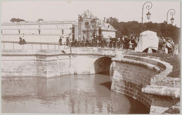 Editor: Here we have "Gezicht op de Pont du Cabouillet in L'Isle-Adam," a gelatin silver print with graphite from 1897. The soft sepia tones and hazy light create this sort of dreamlike image. What catches your eye most about this piece? Curator: The bridge, of course, is not merely a physical structure; it's a powerful symbol. Think about bridges in mythology, the Bifrost, for example. Bridges connect realms. In this photograph, I am most fascinated by the artist's choice to highlight a location with elements of both transit and reflection, suggesting something about the changing world at the fin de siècle. Do you see that reflection in the water? Editor: Yes, the reflections of the arches! Is that something the artist did deliberately, or is it a product of the printing process? Curator: It is both intentional and inherent to the medium. The photograph is acting as a mirror to cultural anxieties and advancements. Consider, too, the light—how it softens the industrial feel of the bridge itself. Do you see any specific symbols emerging for you? Editor: The stillness of the water versus the implied movement across the bridge creates a sort of quiet tension. Also the absence of color and distinct details lends the entire landscape an oneiric and almost nostalgic aura. Curator: Exactly. It’s a memory, perhaps even a premonition, captured in time. The tonal qualities evoke an era grappling with rapid industrialization, looking back to the agrarian past while simultaneously stepping toward an uncertain future. Are there any other bridges that come to your mind? Editor: Now that you mention it, the Bridge of Sighs in Venice. Both beautiful but, in their respective context, carry that subtle message of melancholy. Curator: Well observed. So, what has resonated most with you from our conversation? Editor: How seemingly simple landscapes can reflect profound cultural shifts and anxieties through subtle symbolic choices. Thanks!