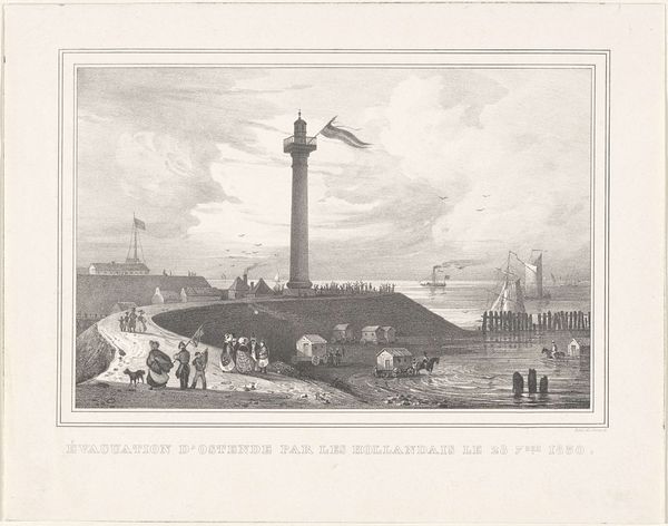 This is an anonymous rendering of the ‘Gezicht op de Gedenknaald in Scheveningen.’ The print is a study in the interplay between verticality and recession. An obelisk stands proud of the horizon, dominating the composition. The linear quality of the monument draws the eye upwards, and the surrounding figures appear to exist to emphasise the monumental vertical thrust. Note that the print employs the language of perspective and proportion that was prominent at the time. The receding lines of the landscape lead towards the sea, mirroring the shape of the obelisk. The entire image is framed by an octagon, drawing our attention to the print’s constructed nature. Does this deliberate framing serve to question notions of what is inside or outside the artwork? And does this questioning invite us to expand our interpretation?