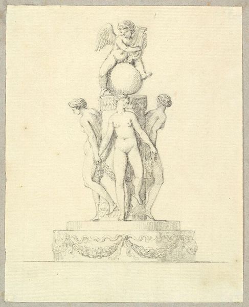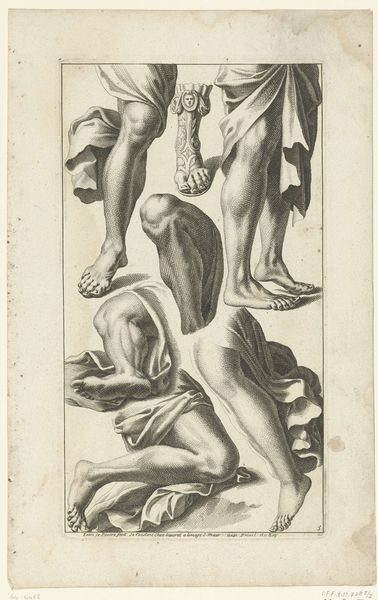Editor: This is Giuseppe Maria Mitelli's "Man Pressing Down a Harpy," created sometime between 1634 and 1718. It’s... intense. The harpy looks so distressed, pinned beneath this muscular figure. What do you make of it? Curator: It's like a nightmare frozen in ink, isn't it? Mitelli captures this raw power dynamic, but also, there's a theatricality to it. The harpy's exaggerated expression, the almost cartoonish muscles...it feels like a morality play. Is it about dominance, temptation, the struggle within ourselves? Maybe all of the above! Editor: It does feel very staged! I hadn’t thought of it that way. Curator: Art often holds up a mirror, reflecting our own inner battles and societal anxieties. Next time you face a challenge, remember this image – even the most monstrous struggles can be overcome! Editor: Thanks, I definitely will! It's amazing how much a single image can say.