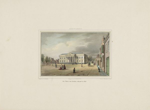 Isaac Reijnders Sz. made this print of the Amicitia Society building in Leeuwarden in the Netherlands. Prints like this one were often commissioned to celebrate civic institutions. This building housed the Amicitia Society, a private club for the city's elite. We see a classical architectural style that evokes rationality and order, mirroring the Enlightenment ideals of the time. The composition guides our eye from the bustling street life towards the imposing facade, emphasizing the society's position within the community. Prints like this one served to solidify the cultural standing of institutions like Amicitia. They show an ideal of social life, not necessarily its reality. Understanding the history of such societies and the images they projected requires archival research into membership records, meeting minutes, and other historical documents. Only then can we really understand the social hierarchies that were being reinforced through art.
