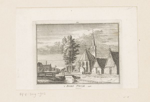 Editor: This is Hendrik Spilman’s "View of the Market of Tilburg," an engraving from 1745. It's so delicate. I love how it captures everyday life with that impressive church steeple in the background. What really strikes me is how still everything seems. What story do you think Spilman is trying to tell here? Curator: Ah, Spilman. His work feels like peering through a time portal, doesn't it? It's more than just a cityscape, I think. It’s a gentle snapshot of Dutch life, almost like a visual poem. Look at the people, the subtle details. To me, the stillness you mentioned almost speaks to a sort of contentedness, a quiet hum of daily existence. Editor: That makes sense! Like a paused moment of the everyday. It’s interesting that you call it a poem, as though Spilman is capturing feeling with his engraving tool… Curator: Precisely! Notice how he uses line to create a sense of light and space, the depth… isn't it beautiful? Almost dreamlike. Now, knowing it's 1745, what cultural ripples might have shaped such a peaceful image? Think about Dutch society then. Editor: Okay, so 1745… The Dutch Golden Age had passed, right? So maybe this tranquility is almost a longing for that previous prosperity? Curator: That's a great point! A wistful echo, perhaps. Or, conversely, a quiet appreciation for the stability they still possessed. It’s ambiguous. Editor: That tension between wistful longing and quiet appreciation makes it even more fascinating! I'm starting to see more layers now. Thank you! Curator: My pleasure! That’s the magic, isn't it? Art speaking across centuries, inviting us to listen closely.