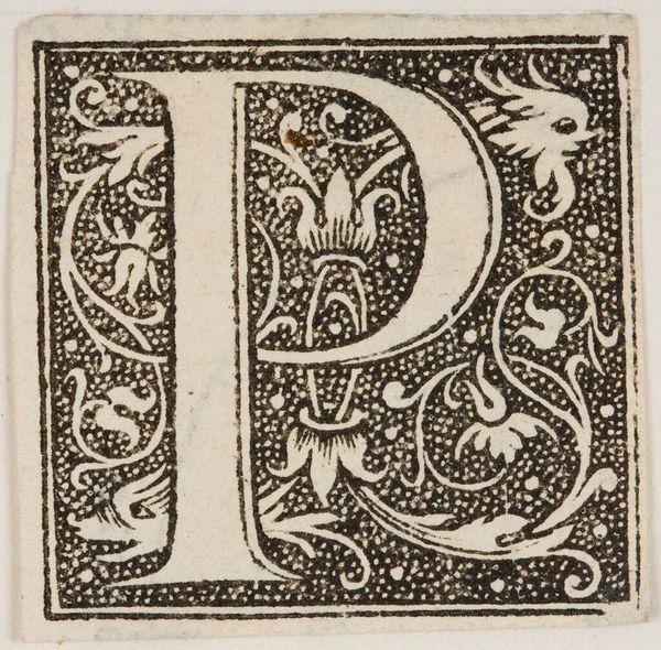 Curator: This intriguing block print from an anonymous artist is simply titled "Letter D." Editor: It’s quite striking! The heavy black ink makes the initial feel almost…ominous, despite the delicate, organic details within. Curator: Consider how these illuminated letters were often used to mark the beginning of significant texts, imbuing them with authority. Editor: Yes, and notice the bird and almost grotesque human figure nestled in the swirls. Are they symbols of wisdom and humanity, or something darker? Curator: Their inclusion reflects a broader cultural move to embellish even the most basic components of language. Editor: I’m left wondering what powerful statement this particular "D" might have been meant to introduce. Curator: Indeed, the letter transcends mere alphabet and becomes a potent symbol of its time.