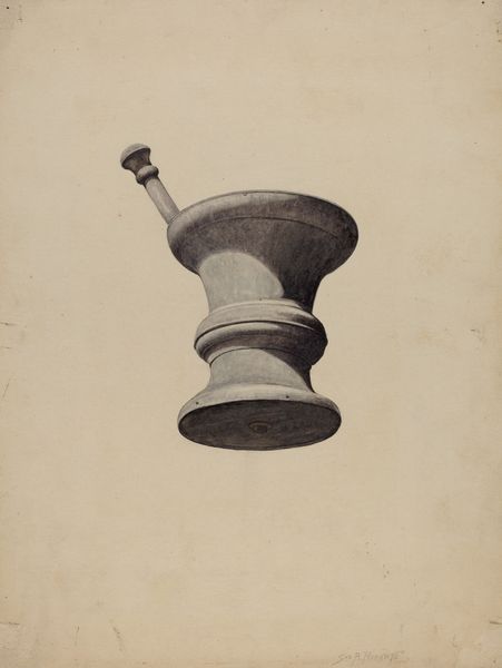 Edward White made this drawing of an "Economy Tint Lamp" with graphite and crayon on paper. The drawing has a sense of quiet observation, a carefulness in the mark making and a subdued colour palette that speaks to an artmaking process rooted in the everyday. The material aspects here are particularly interesting, how the artist uses humble materials to depict an everyday object. The graphite and crayon, with their muted tones, give the lamp a sense of understated elegance, while also hinting at the potential darkness it holds. Look at the way White captures the texture of the metal, especially on the cylindrical container, creating depth and dimension through subtle gradations of tone. It almost feels like a metaphor for the way art can illuminate the mundane, transforming the ordinary into something extraordinary through careful observation and skillful execution. It reminds me of Giorgio Morandi's still lifes, which celebrate the beauty of simple, functional objects. Both artists invite us to slow down and appreciate the poetry of the everyday. Just goes to show, art doesn't always need to shout to be heard.