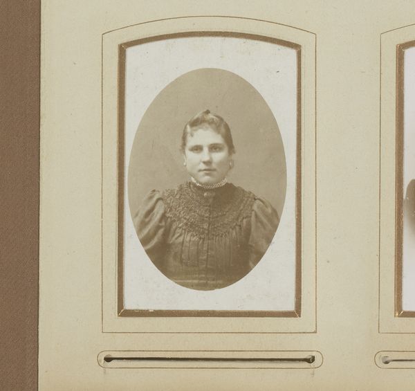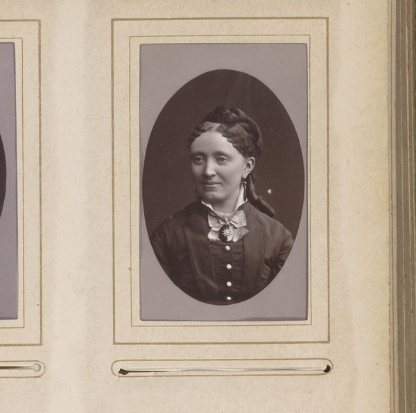 This is a photographic portrait of a woman with a necklace and medallion, made by Johannes Leonardus van der Heijden. Photography in the 19th century was a fascinating blend of science, craft, and social practice. The image itself would have been created through a complex chemical process, involving light-sensitive materials and careful development techniques. Beyond the technical expertise required, portrait photography like this was also deeply embedded in the social and economic fabric of the time. It offered a way for individuals to record their likeness and project a desired image to the world. The woman's attire, her necklace, and even the pose she strikes, all contribute to a carefully constructed representation of identity and status. It's important to remember that photographs like this were not simply neutral records of reality; they were carefully crafted objects that reflected the values and aspirations of both the sitter and the society in which they lived. Paying attention to these aspects helps us move beyond simply seeing a picture, and instead, understanding it as a cultural artifact with layers of meaning.