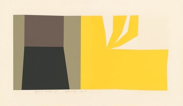 Curator: The clean, geometric lines of this piece immediately draw the eye. There's something almost optimistic about the limited palette. Editor: We're looking at "SS 4-78" by Nassos Daphnis, an acrylic on canvas triptych created in 1978. The three panels together create a minimalist exploration of form and color. Tell me more about why it evokes optimism for you. Curator: The strong yellow and gentle gray arcs against the creamy white, the almost mathematical precision. It seems to me the choice of color speaks to that optimism of post-war Modernism and a forward-looking societal project. There’s a faith in progress, almost a utopian sentiment there. I also appreciate how it nods toward Op and Pop art simultaneously. The sleekness highlights how clean lines influenced design, blurring distinctions of gendered crafts. Editor: Interesting point about societal faith being embodied here. Considering its material execution and Daphnis’ background as a scientist and then abstract expressionist painter, it's also easy to see connections to industrial processes, perhaps reflecting consumer culture. Daphnis wasn't just slinging paint; he also explored printmaking and sculpture, experimenting across diverse modes of material production and pushing limits, something that really ties into labor relations post-war. Curator: Indeed. I think the triptych form is important, too. Though abstract, the division into three sections recalls altarpieces, transforming abstraction into something quasi-spiritual, something worth venerating. And that sleek surface? Acrylics were becoming ubiquitous at this moment. You've got a very intentional move away from the traditional oil paint of old masters, toward synthetic colors born out of specific socio-economic and technological conditions. Editor: Absolutely. And consider Daphnis’ embrace of hard-edge painting, a very determined move away from gestural, messy abstraction. This work and movement embraced clean manufactured forms and sharp color juxtapositions. The smooth application of the acrylic, lacking brushstrokes or any trace of the artist’s hand, feels significant here. I believe there's a dialogue here between art history and contemporaneity which also touches questions about social responsibility toward industrial manufacture and environmental consciousness as society modernizes. Curator: This really encapsulates how abstraction reflects and refracts societal shifts, revealing embedded ideologies even within seemingly non-representational forms. The way geometric abstraction engaged with space challenges any art’s supposedly purely aesthetic value, while offering potent reflections on a time’s aesthetic politics. Editor: Agreed. The work makes us ponder abstraction’s place within broader dialogues of materiality, and its continued influence across disciplines to this day.