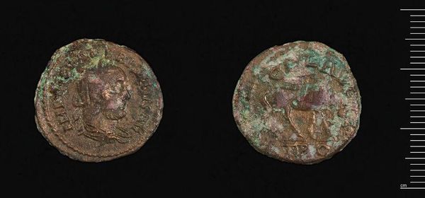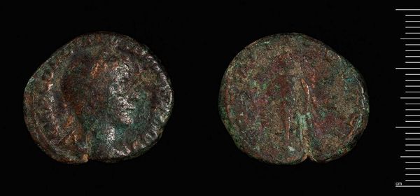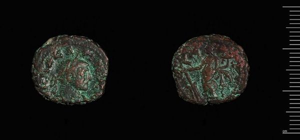Editor: This is One-Eighth Stavraton of Manuel II. It's a coin. I'm struck by how worn it looks. What can we learn from its materiality? Curator: The coin's degradation speaks volumes about the circulation of wealth and power. Think of the hands it passed through, the transactions it facilitated. Its composition reveals economic constraints on the Byzantine Empire. Editor: Economic constraints? Curator: Precisely. Debasement of coinage often reflects financial instability. Was the metal content reduced over time? This object embodies a complex history of production, use, and value. Editor: It's fascinating to think about the story embedded in the material itself. Curator: Indeed, beyond the image, the coin's very substance holds a record of its socio-economic context.